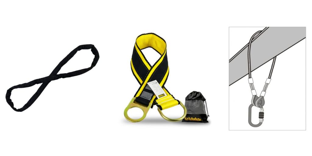 Slings, eslingas y cintas certificadas utilizadas para envolver vigas o columnas.